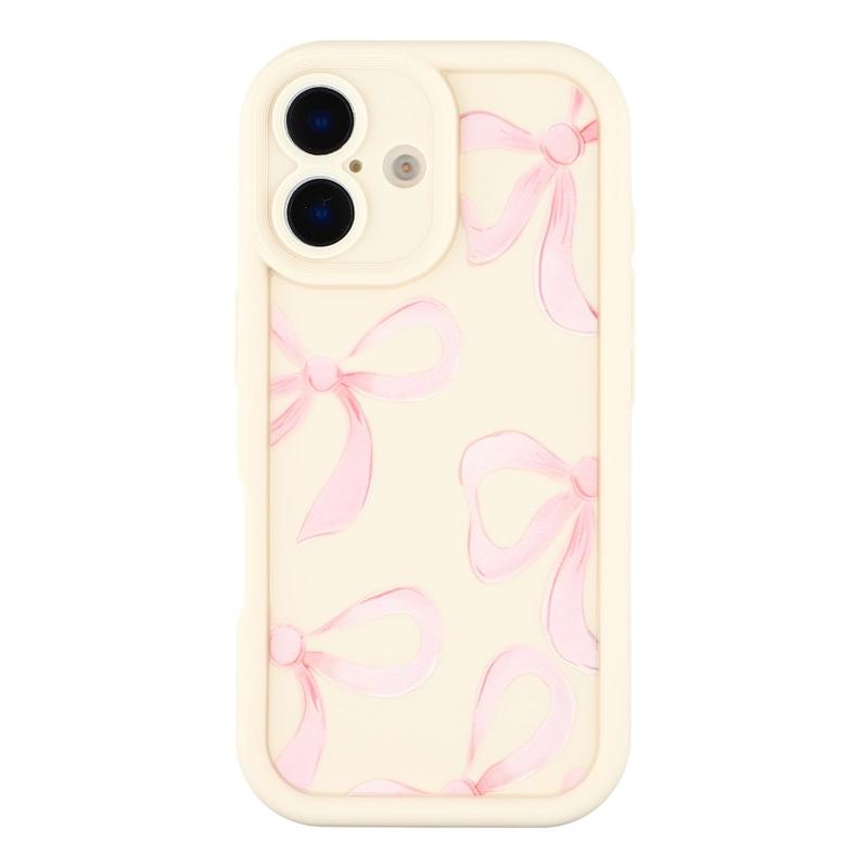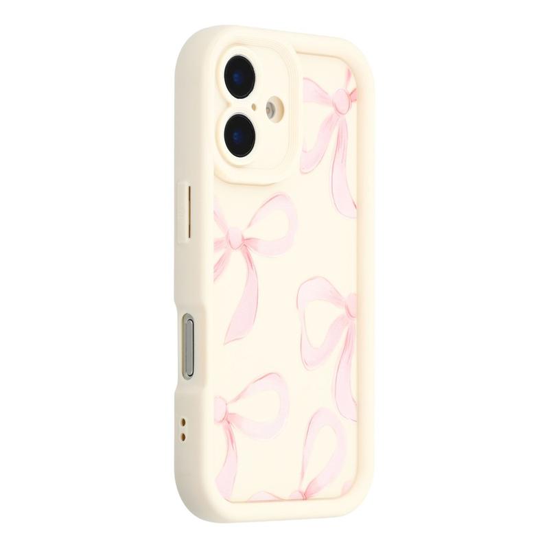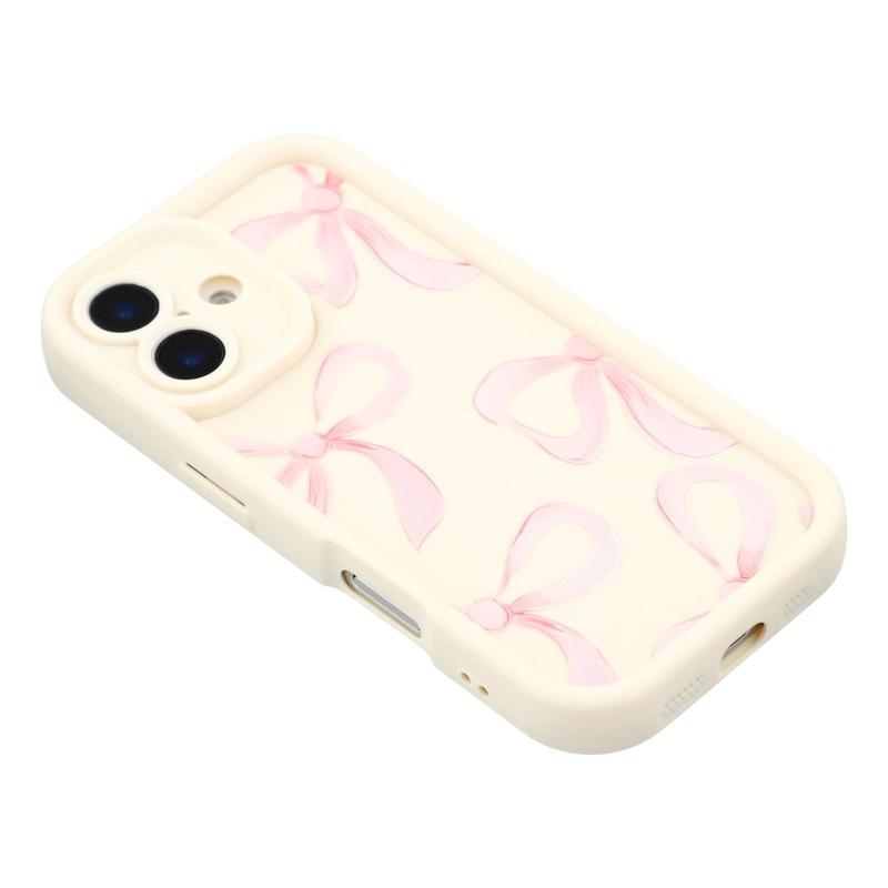 iPhone 17 Stylish Shockproof TPU Case with Raised Edges - White / Big Bow