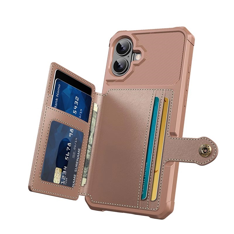 - iPhone 17 wallet case has a secure snap button closure, wallet design, and several card slots with a cash pocket