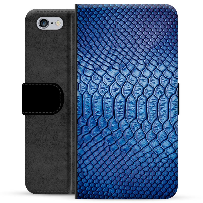 Introducing the iPhone 6 / 6S Premium Wallet Case, exquisitely designed for both functionality and style. Featuring a striking blue scaled texture that not only adds visual appeal but also offers a tactile experience that is both unique and comfortable to hold.