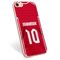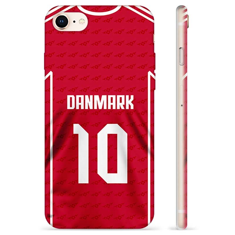 This TPU case for the iPhone 7/8/SE (2020)/SE (2022) features a vibrant and patriotic design that celebrates Denmark. The case boasts a bold red color that mirrors the Danish flag, with subtle accents that reference the national colors and symbols of Denmark. On the back, the centerpiece is the word "DANMARK" printed above the large number "10," reminiscent of a player's jersey and adding a sporty flair to the case.