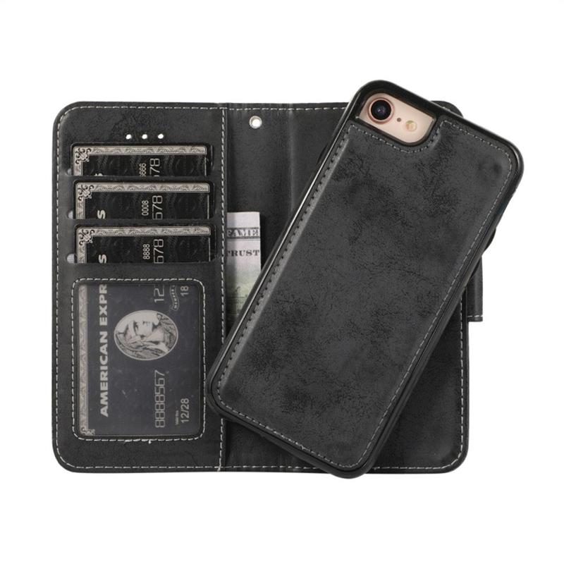 iPhone 7/8/SE (2020)/SE (2022) Vintage 2-in-1 Wallet Case with Removable Cover - Black