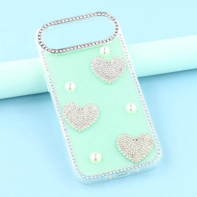 This iPhone Air case combines reliable everyday protection with glamorous style. Featuring shimmering rhinestones around the edges and sparkling pearl heart decorations on the back, it turns your iPhone Air into a fashionable accessory while keeping it safe from scratches and bumps.