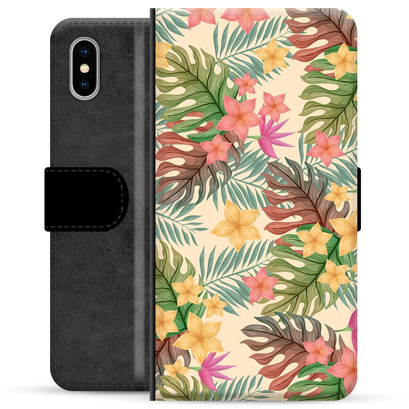 This premium wallet case for the iPhone X / iPhone XS is adorned with a beautiful and vibrant print of pink flowers, creating an eye-catching design that's both stylish and feminine. The case features a durable construction that provides protection for your phone while maintaining a slim profile, so it won't add unnecessary bulk to your device.