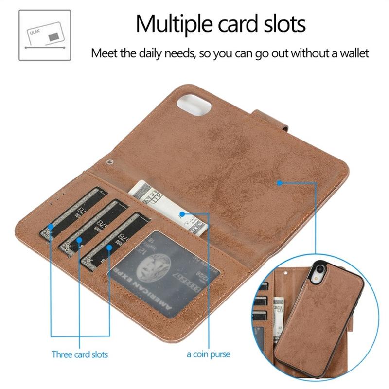 Vintage 2-in-1 Wallet Case with Removable Magnetic Cover for iPhone XR
