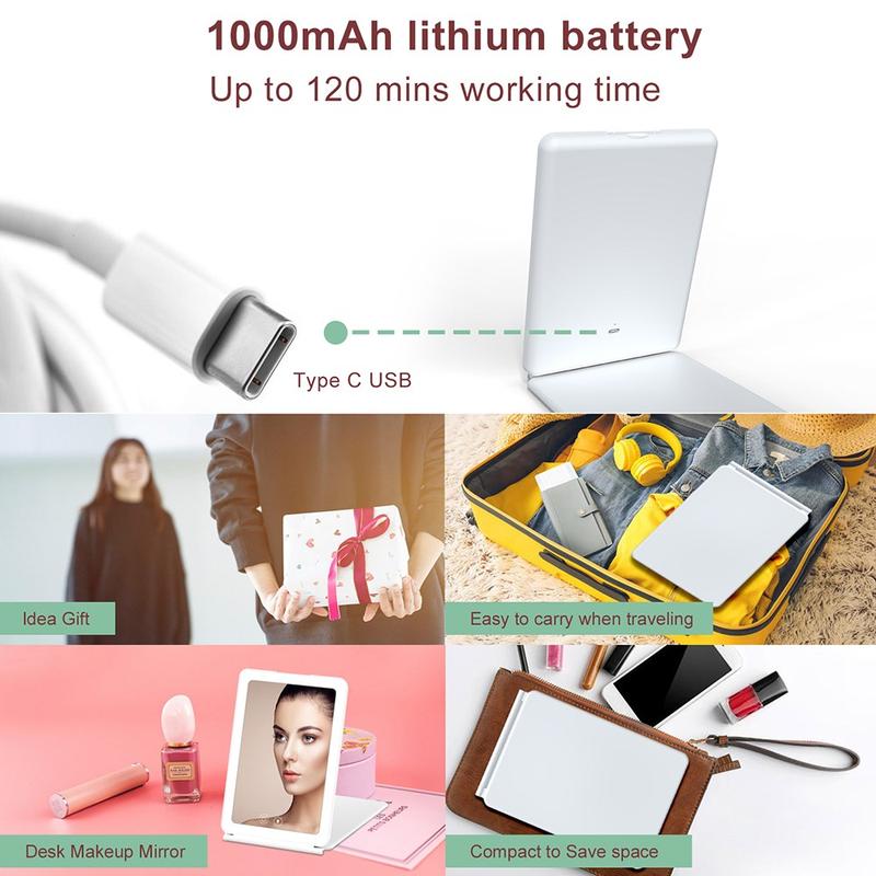 The J17 Folding Portable LED Makeup Mirror combines convenience, functionality, and elegance. Its dual-sided design with adjustable lighting makes it a versatile tool for every beauty routine, while the compact, foldable form ensures portability for on-the-go use. The memory function and USB-C charging enhance usability, making this mirror a must-have for anyone who values precision and portability.