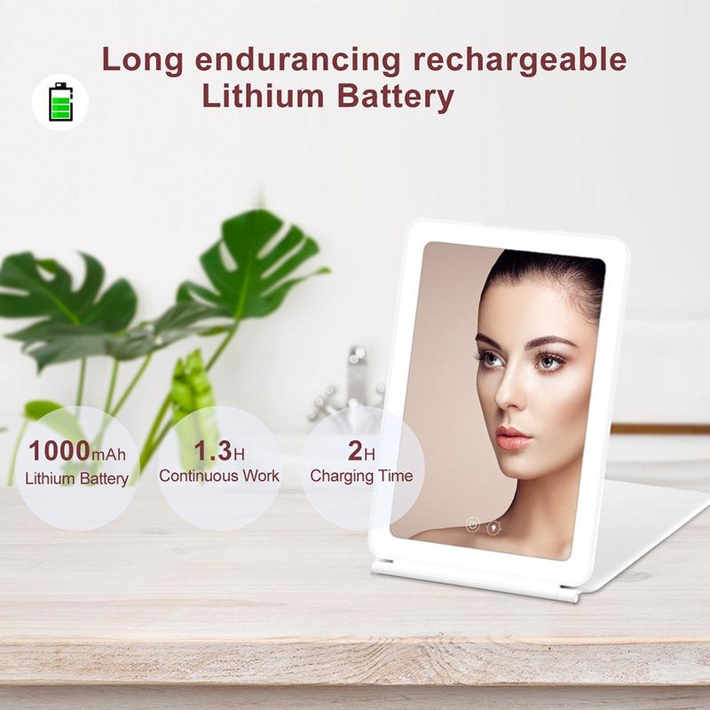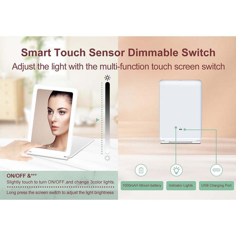 - Adjustable Brightness Levels: Three touch-sensitive brightness settings (cold, warm, and natural light) adapt to different lighting environments and personal preferences.