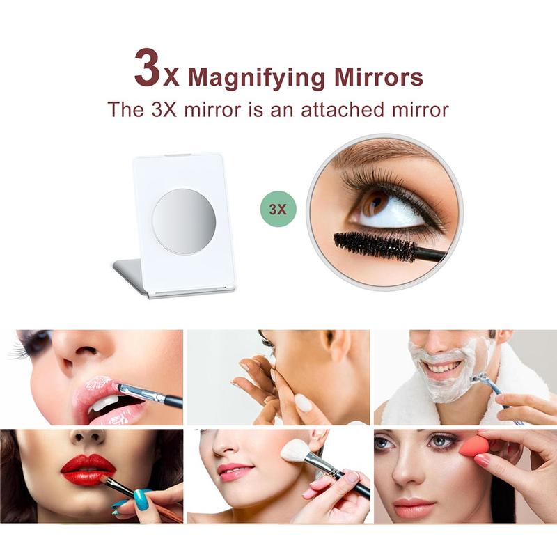J17 Folding Portable LED Makeup Mirror with 3X Magnification – Perfect for Travel and Home