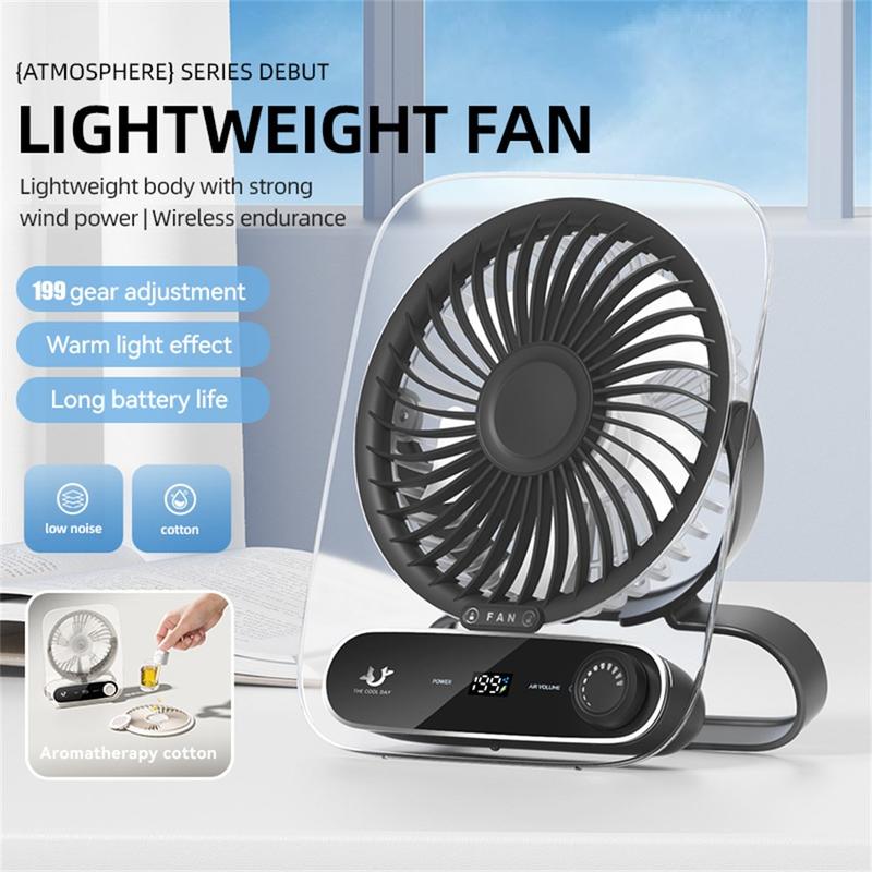 • JF136 Wide-Angle Portable Desk & Hanging Fan / 199-Speed 3000mAh USB-C Rechargeable Cooler