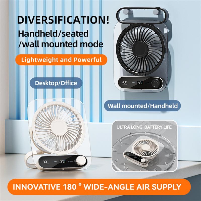 JF136 Wide-Angle Portable Desk & Hanging Fan / 199-Speed 3000mAh USB-C Rechargeable Cooler