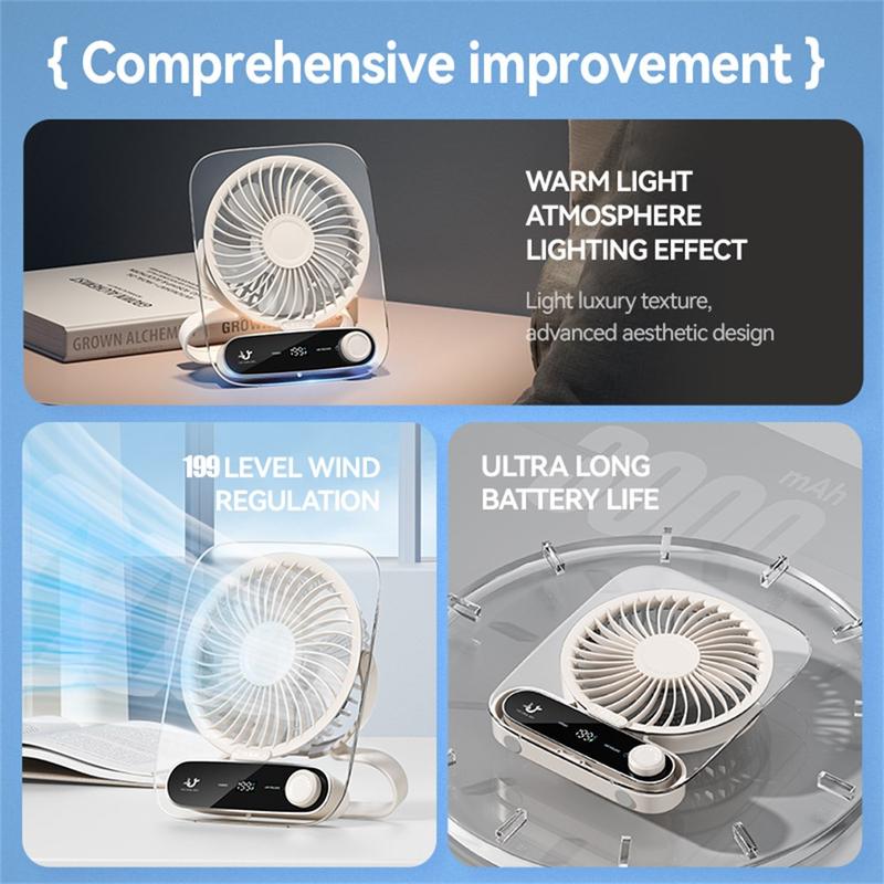 JF136 Wide-Angle Portable Desk & Hanging Fan / 199-Speed 3000mAh USB-C Rechargeable Cooler