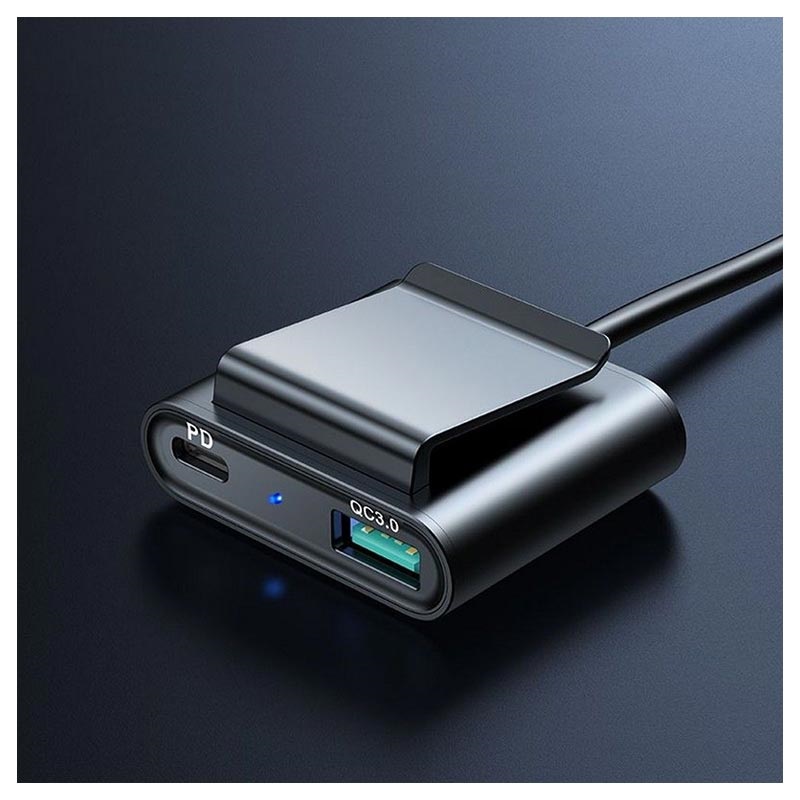 This Joyroom JR-CL05 car charger features two USB-A and one USB-C port on the main device and a built-in 1.5m extension cable with one USB-C and one USB-A port. It is equipped with Power Delivery and Qualcomm Quick Charge 3.0 technologies to provide fast charging for your devices. The cable extension has a clip on the back so that you can organize it neatly. Thanks to five powerful outputs, you can recharge up to five devices simultaneously with your cables.