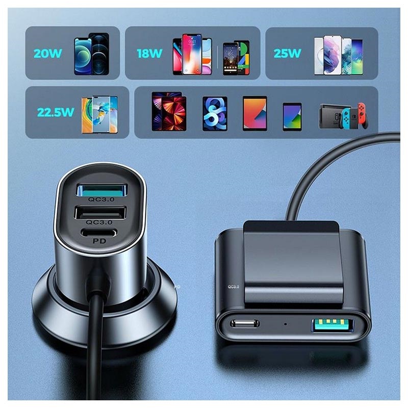 - Joyroom JR-CL05 fast car charger with a cable extension for back-seat passengers