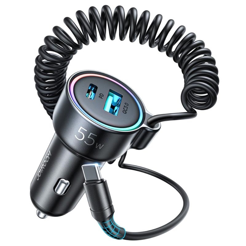 - Joyroom JR-CL07 fast car charger with integrated USB Type-C cable