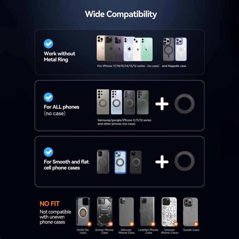 – Magnetic Attachment: Dual-sided, Magsafe compatible