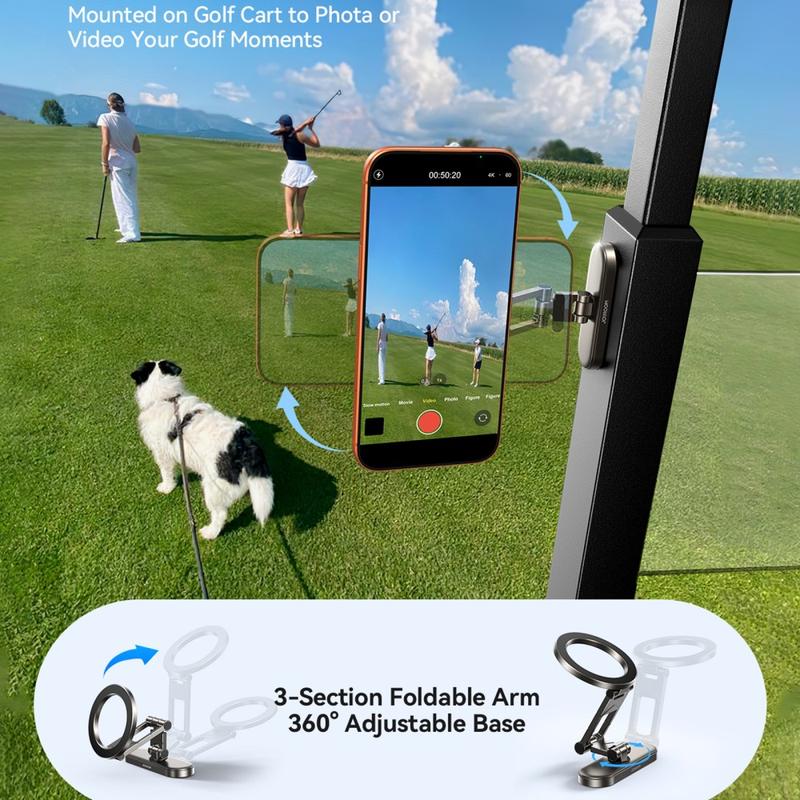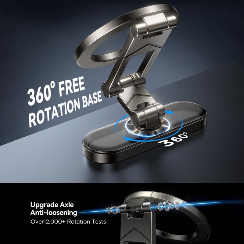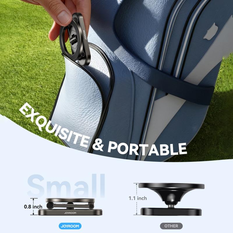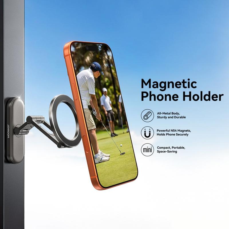 The JOYROOM JR-ZS520 MagSafe phone holder combines premium materials with a highly flexible design, offering a stable, hands-free viewing experience in any setting. Built from durable zinc alloy, the stand provides a solid, high-quality feel while ensuring long-term reliability. Its dual-sided magnetic attachment is fully compatible with Magsafe, allowing effortless one-handed mounting and removal. With 360° rotation and a 3-fold adjustable arm, you can position your device at the ideal angle for video calls, workouts, navigation or casual viewing. Whether at home, in the office, at the gym or even on the golf course, this compact stand delivers strong magnetic stability and unmatched versatility.