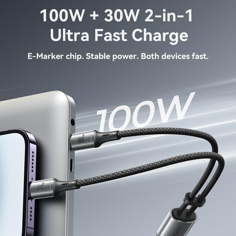 • Joyroom S-A57 100W 2-in-1 Charging Cable - USB-C to USB-C + Lightning Dual Connector, 480 Mbps Data Sync, Nylon Braided