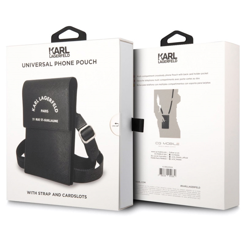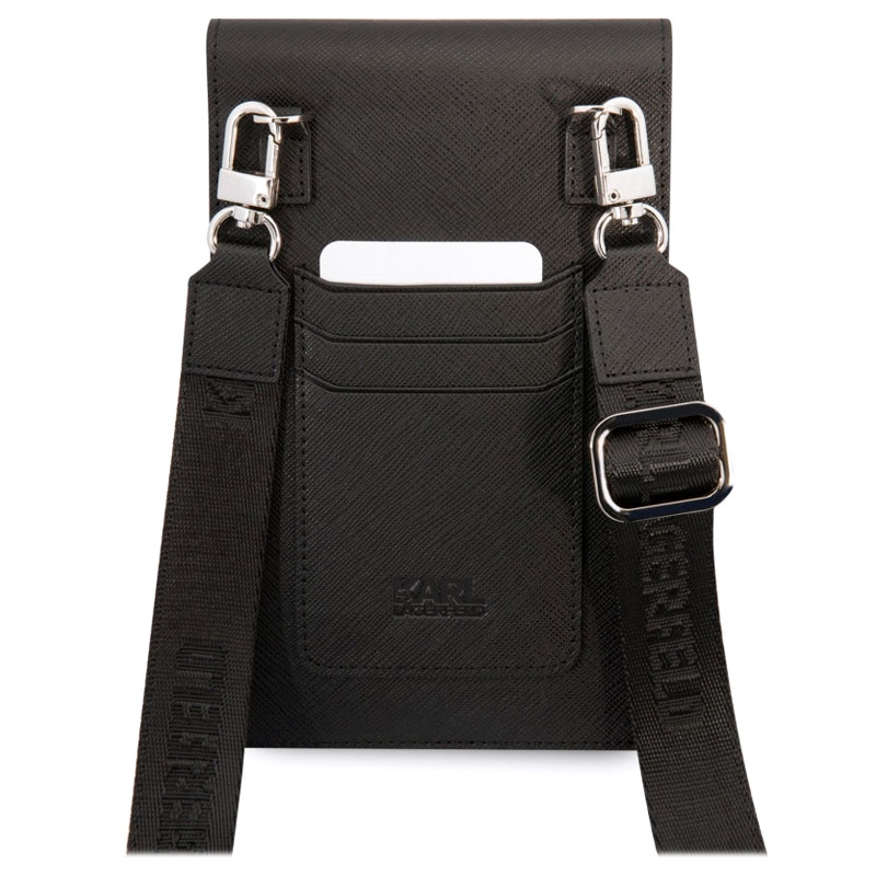 - The Karl Lagerfeld shoulder bag for smartphones is made of polyurethane