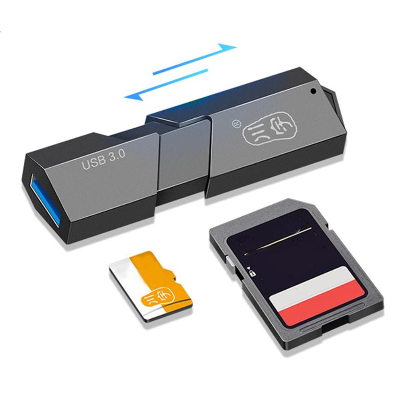 KAWAU C307 Mini Portable USB3.0 Card Reader SD+TF 2-in-1 Card Reader with Cover / Single Drive Letter