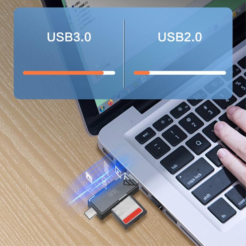 KAWAU C351 USB 3.0 High Speed Type C + USB SD / TF Card Reader Portable OTG Adapter