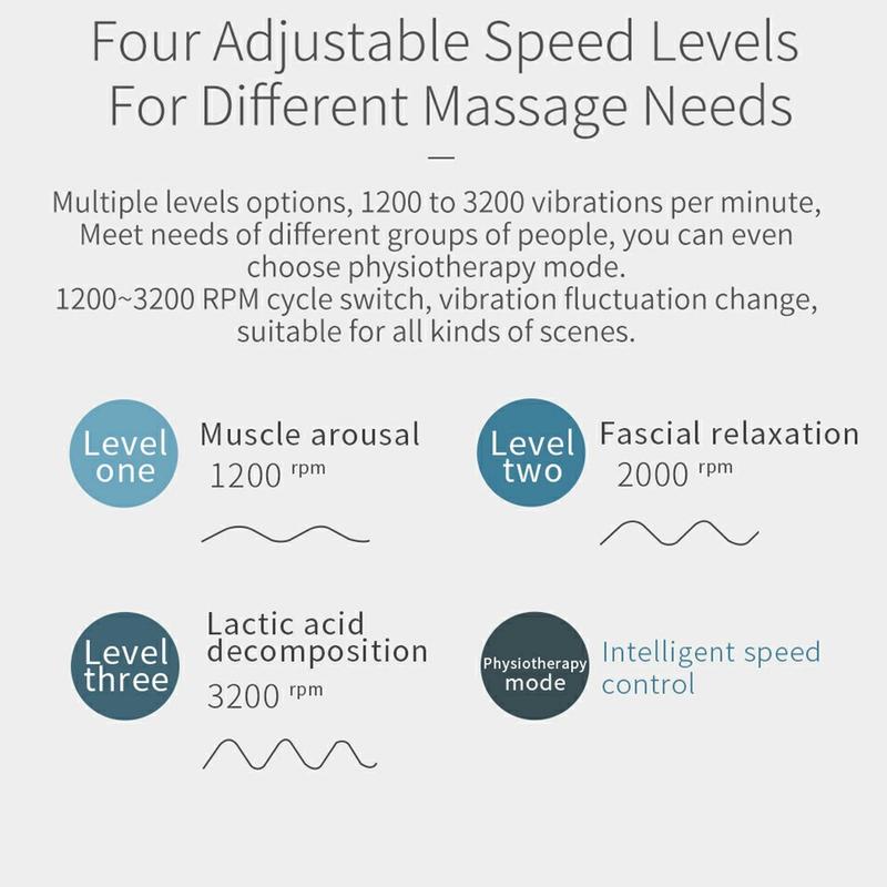 - Four Adjustable Speed Levels: Customize your massage experience with four speed settings, allowing you to adjust the intensity to suit different muscle groups and personal preferences.