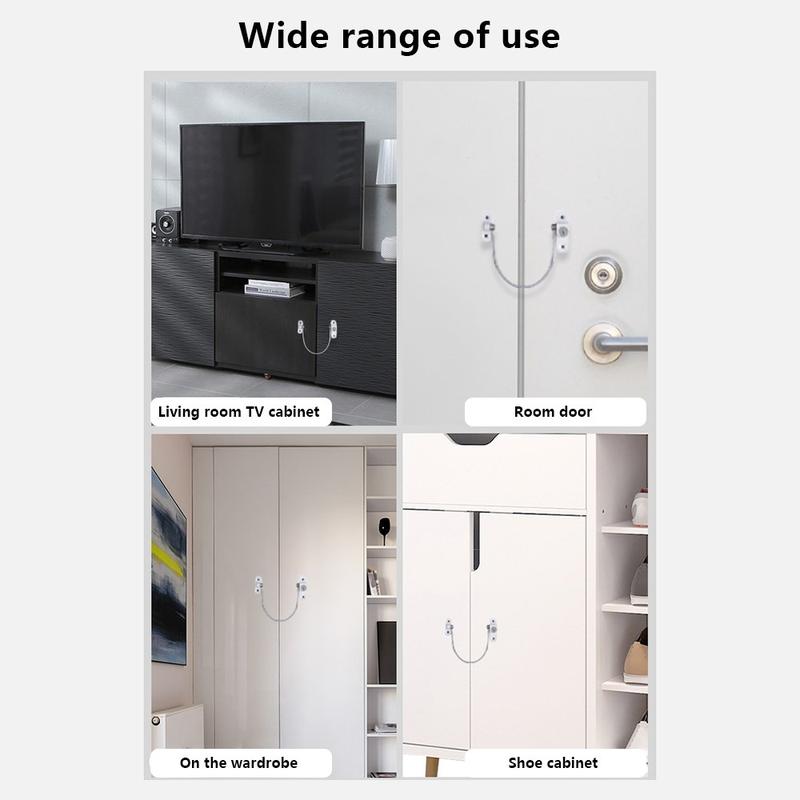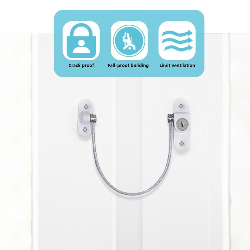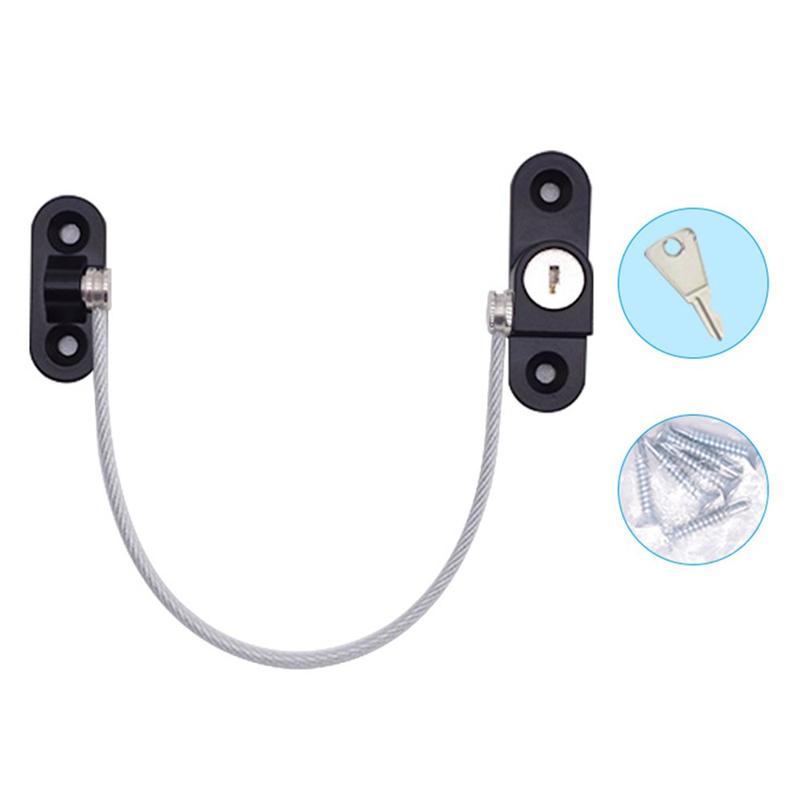 Protect curious kids and secure valuables with the FQ5 safety lock. The housing is cast from tough zinc alloy, while a multi‑strand steel wire cable resists cutting and pulling. Mount the base with the supplied screws, loop the cable through the matching catch and turn the key to lock. Once in place the window, cupboard or refrigerator door opens only far enough for ventilation, not enough for little hands to squeeze through.