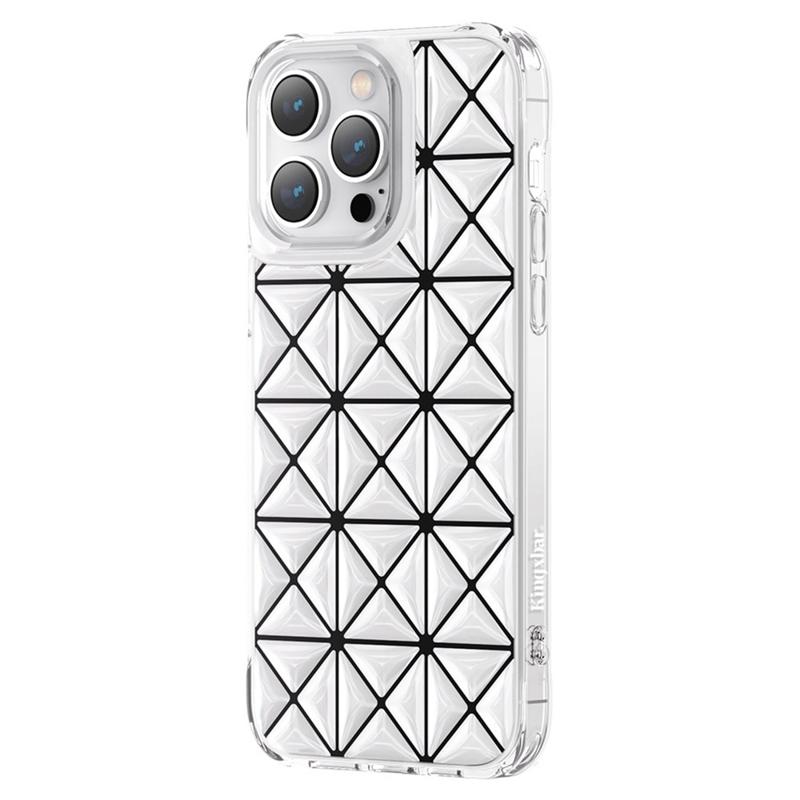 KINGXBAR Miya Series for iPhone 14 Pro Max 3D Rhombus Pattern Phone Case IMD TPU + PET Reinforced Corners Anti-Scratch Cover