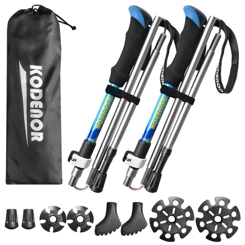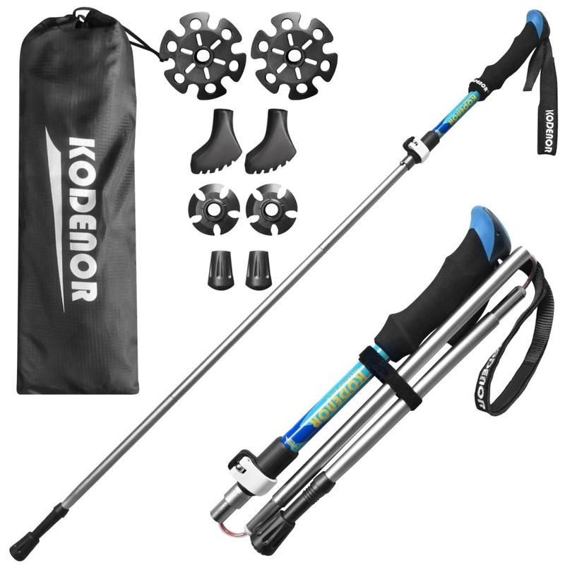 KODENOR 2 PCS Collapsible Trekking Pole Set For Trekking Camping Travelling Climbing Short Style - Blue