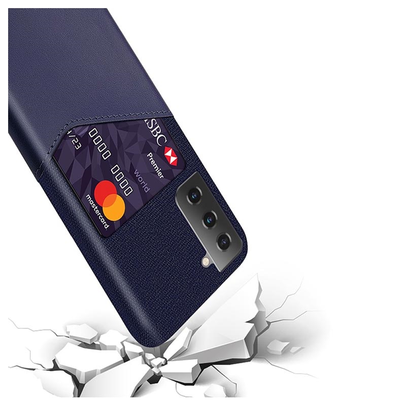 Thanks to the hard polycarbonate layer, this ultra-thin cover gives your Samsung Galaxy S21+ 5G extra rigidity while keeping it pocket-friendly. Upon that, the delicate cloth layer and the integrated card slot make this accessory both fashionable and practical.