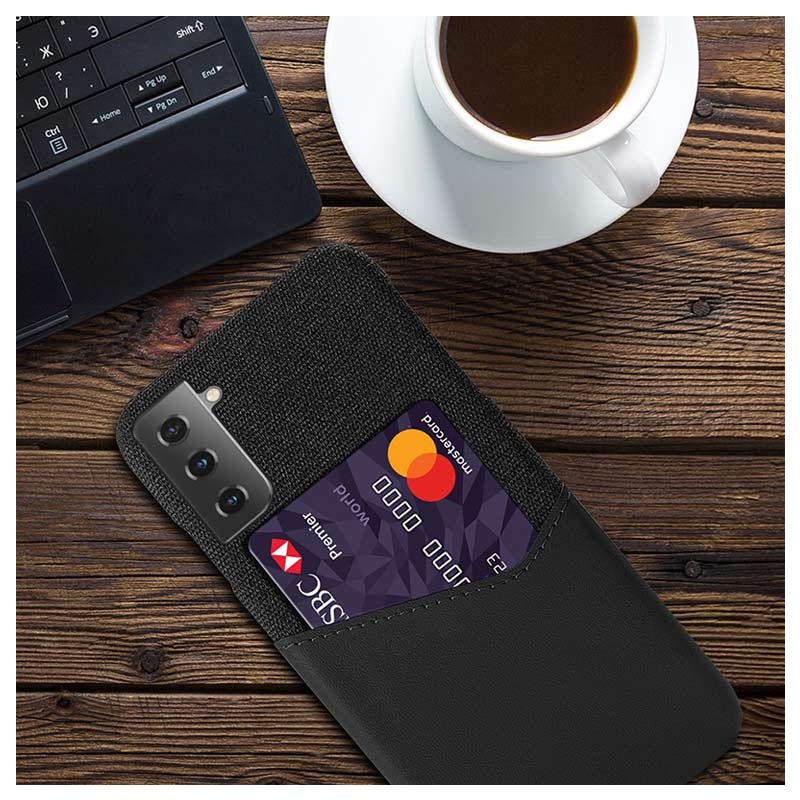 Thanks to the hard polycarbonate layer, this ultra-thin cover gives your Samsung Galaxy S21+ 5G extra rigidity while keeping it pocket-friendly. Upon that, the delicate cloth layer and the integrated card slot make this accessory both fashionable and practical.