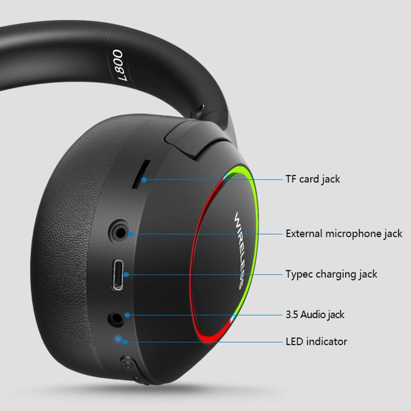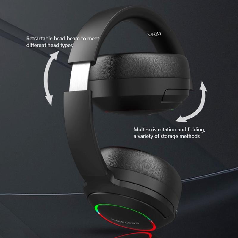 L800 Wireless Headset Music Gaming Headset Folding Bluetooth Headphone with LED Lights / Microphone - Black
