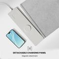 - Large mouse pad surface integrated seamlessly with a wireless charging zone