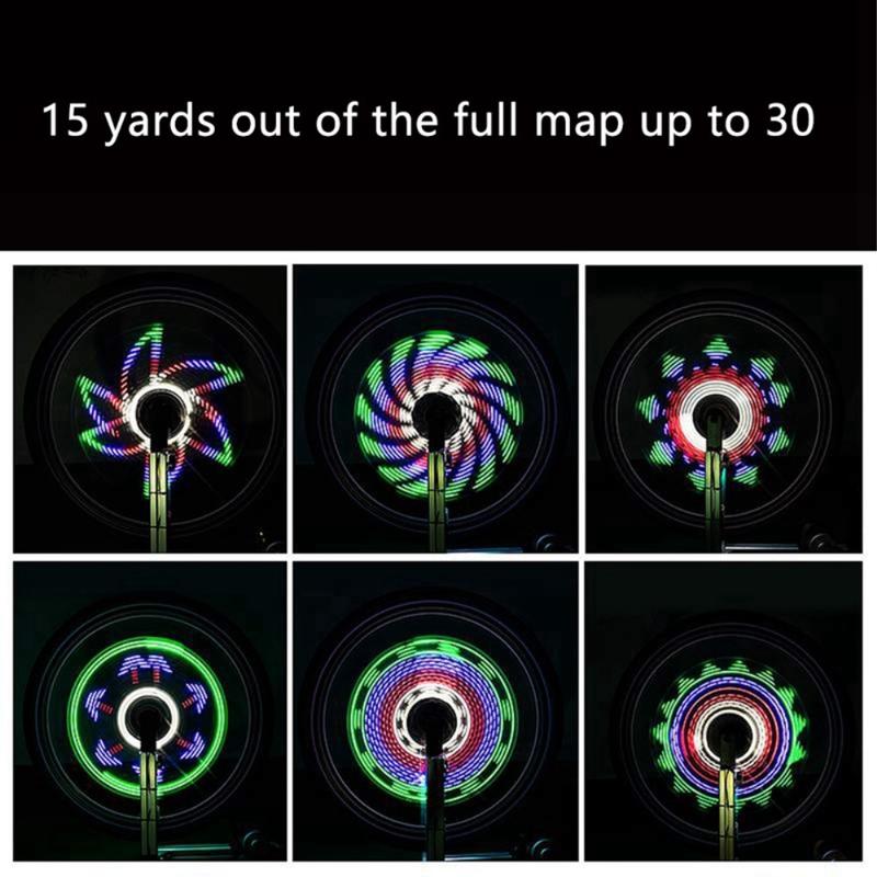 The bike wheel light can flash 30 different kinds of patterns, each pattern will be changed every 4 seconds