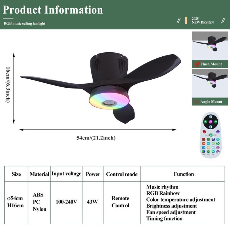 • LEC016R Ceiling Fan Light – RGB Mood, Quiet Airflow & Built-In Bluetooth Speaker