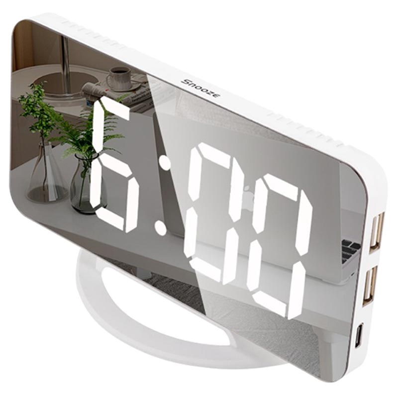 • LED Alarm Clock with Digital Display, Mirror and Detachable Stand TS-8201 - 2x USB-A Output