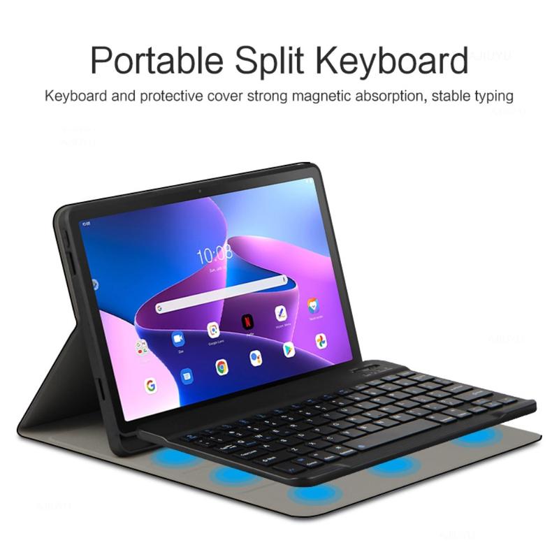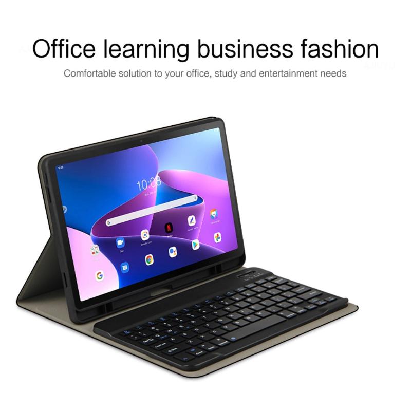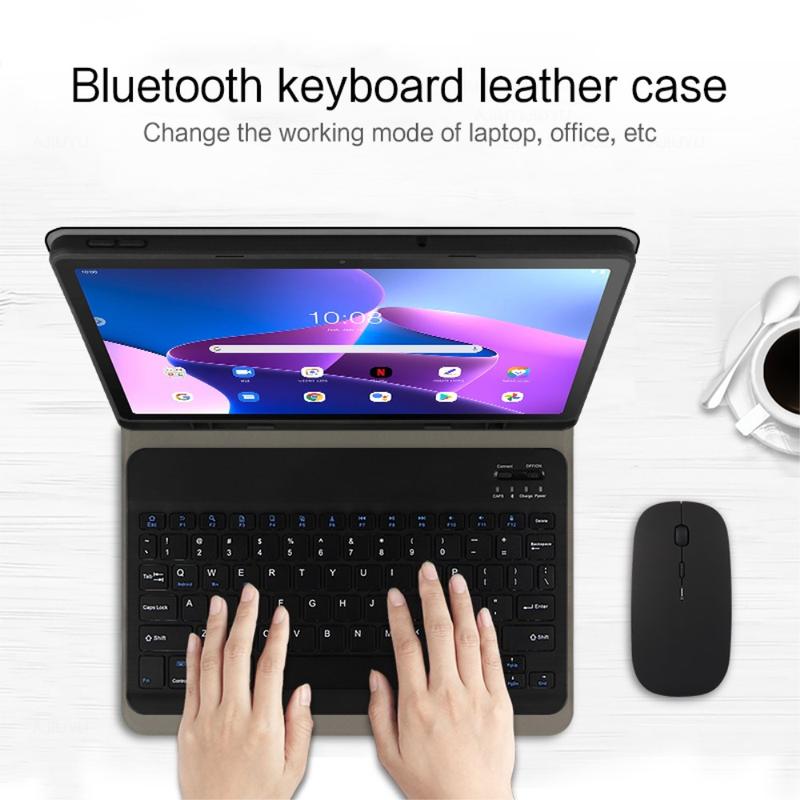 - An elegant folio case with a Bluetooth keyboard for Lenovo Tab M10 Plus Gen 3