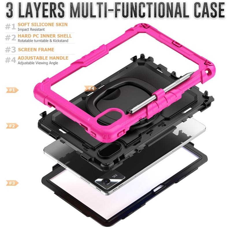 Lenovo Tab M11/Idea Tab Heavy Duty 360 Case with Hand Strap - Hot Pink