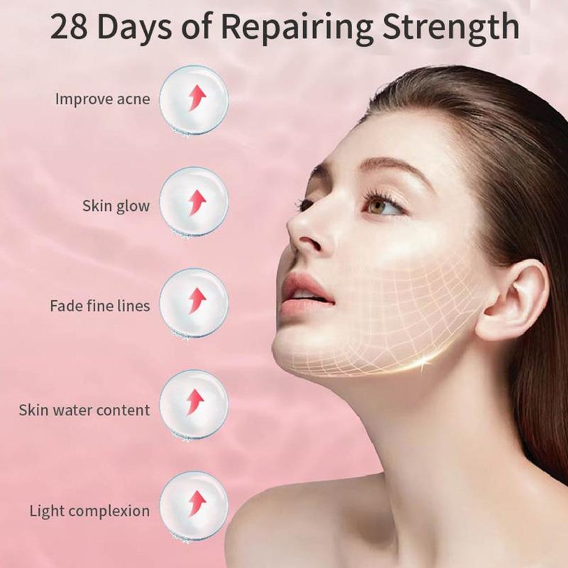 - Skin brightening: Green and white light even out tone and improve radiance.
