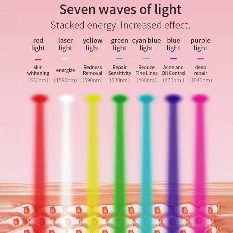 - 7-Color LED Therapy – Includes red (630nm), blue (460nm), green (515nm), purple, yellow-orange, cyan, and white light to target multiple skin concerns.