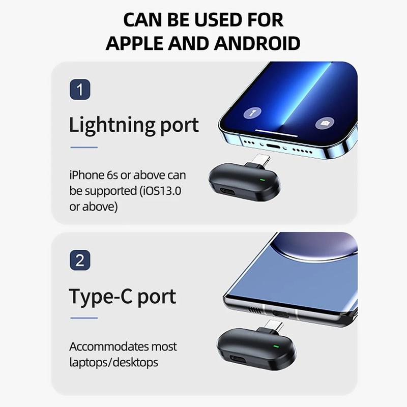 The wireless microphone is small and lightweight, can be easily put into pockets, handbags, briefcases and so on