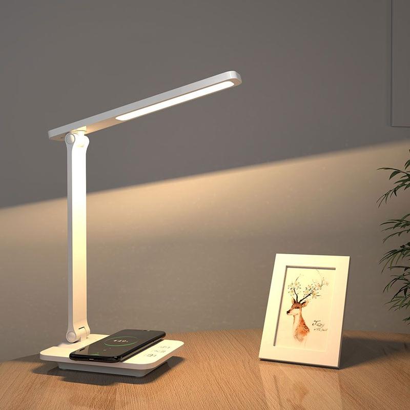 Introducing our latest LED desk lamp, a perfect combination of elegance and cutting-edge technology. This lamp was designed with the modern professional in mind, offering both style and functionality. The sleek design and integrated wireless charging and phone holder make it a must-have accessory for any desk.