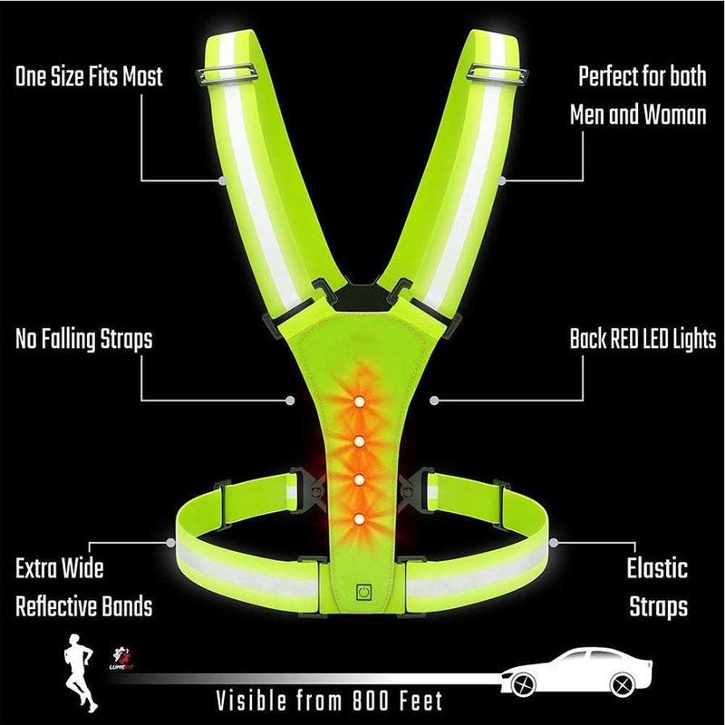 - High-visibility reflective LED vest for outdoor safety in low light