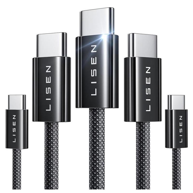 • Lisen USB-C to USB-C Cable Set - 60W, 3A, Power Delivery Fast Charging, Braided Nylon, Multiple Lengths