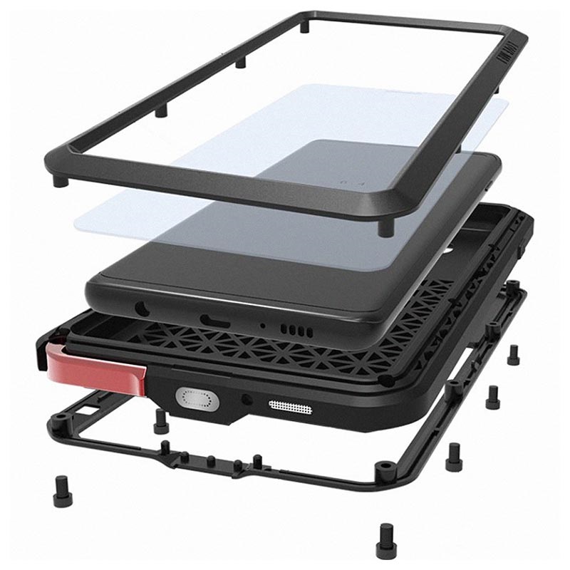 The Powerful case boasts a clever construction that keeps your smartphone safe from dents and dust, as well as impacts. The metal frame is designed to fit the Samsung Galaxy S10+ perfectly and increase device rigidity and shock-resistance, while a layer of tempered glass protects the screen from scratches without affecting touch sensitivity.