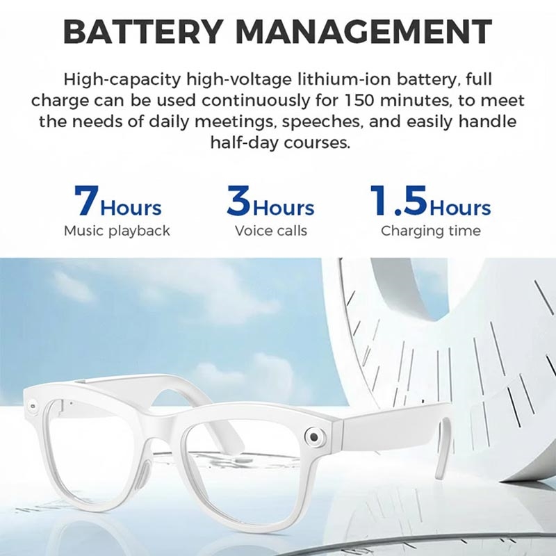 The M01S AI smart glasses blend intelligent translation, HD recording, immersive audio and voice interaction into one sleek wearable device. Equipped with a Sony IMX219 500W camera, the glasses capture high-quality photos and smooth 1080p 30fps video. Whether you're documenting your day or recording hands-free content, the M01S delivers clarity and stability with built-in video optimization.