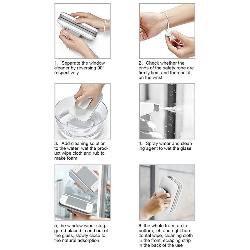 - Double-Sided Magnetic Design: Utilizes strong magnets to securely hold the two cleaning pads together through the glass, enabling you to clean interior and exterior surfaces concurrently without the need for risky external access.