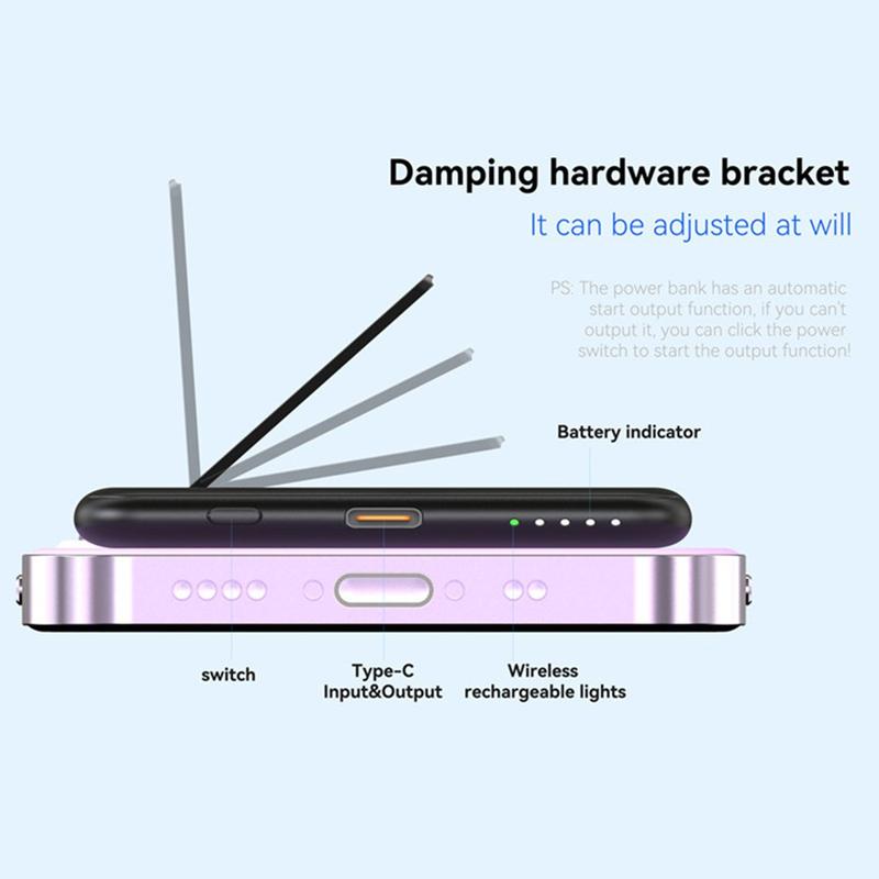The charger features high-speed wireless charging up to 15W, providing efficient power replenishment for compatible devices. It also includes a built-in kickstand, allowing for hands-free use while charging your device. With a capacity of 5000mAh, it provides ample power to keep your devices charged throughout the day. The 65W full charging time is approximately 1.5-2 hours, ensuring quick and efficient charging. The rechargeable Li-polymer battery and advanced temperature control make it a reliable and versatile charging solution for all your charging needs.