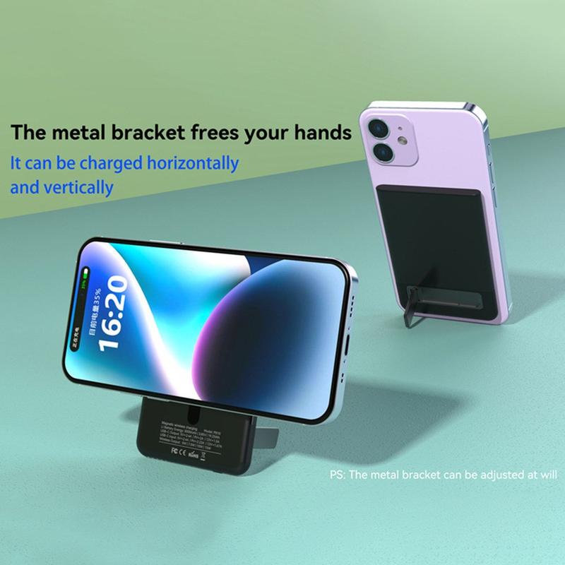 Ultra Thin Metal MagSafe Wireless Charger with Kickstand for iPhone 12/13/14/15/16/17/Air - 15W/5000mAh