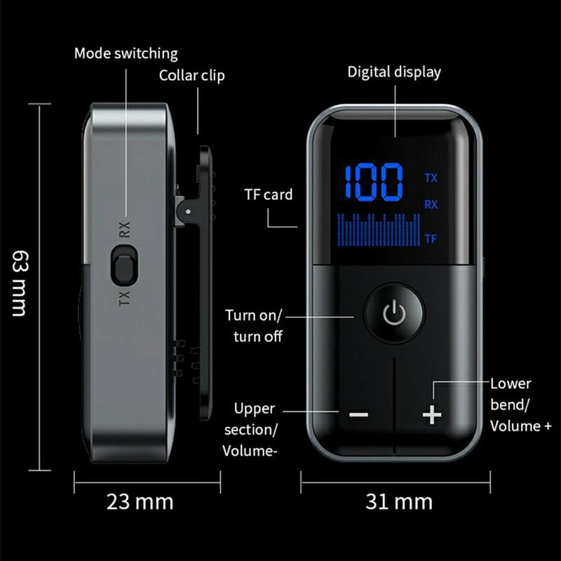 M20 Wireless Bluetooth 5.4 Receiver / Transmitter with 3.5mm AUX – Lavalier Clip Adapter with TF Card Playback for Car and Home Audio