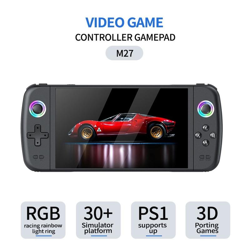 The M27 combines a large IPS display, massive retro game library, responsive controls, RGB lighting, and TV output support—making it an excellent all-in-one handheld console for retro gaming at home or on the go.