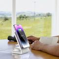 Simplify your charging routine with the M2A 2-in-1 magnetic wireless charger, a sleek and powerful desktop accessory designed to keep your iPhone and AirPods powered up at the same time. With its precise magnetic alignment, vertical viewing design, and certified safety standards, it’s the ideal everyday companion for home, office, or bedside use.